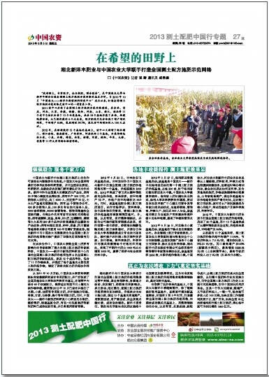 湖北太阳成tyc122cc与中国农业大学联手打造的全国测土配方施肥示范网络通过两年实践,通过高等院校、各级地方政府、农技部门、经销商的积极响应、多方联动、相互整合,使测土配方施肥示范贯彻的更加彻底,示范效应也在日渐凸显,通过15个基地的实地测产,用数据说话,用产量说话,农企实现无缝对接,成功助农增收。太阳成tyc122cc重责任、敢担当的形象在农民朋友脑海中也变得更加根深蒂固。这为未来实现测土配方施肥示范网络实现整建制推进,奠定坚实的基础。