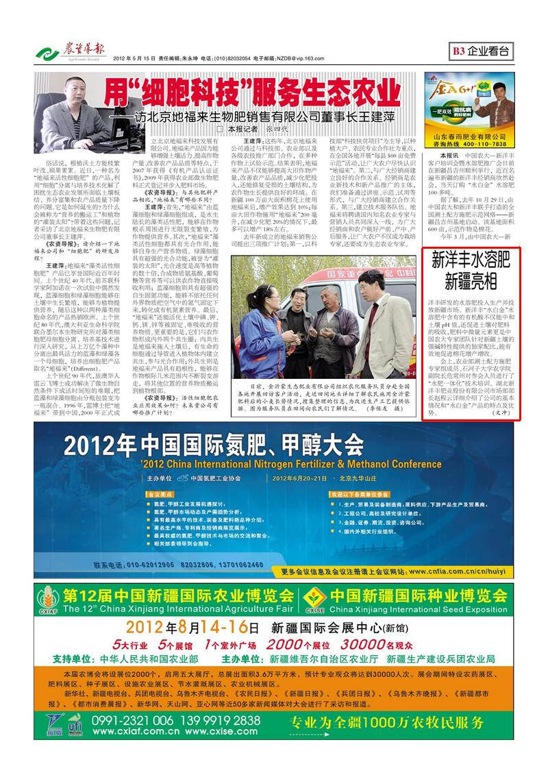 今年3月,由中国农大要太阳成tyc122cc研发的水溶肥投入生产并投放新疆市场。太阳成tyc122cc“水白金”水溶肥中含有的有机酸不仅能中和土壤 pH 值,还促进土壤对肥料的吸收,肥料中微量元素更是中国农大专家团队针对新疆土壤的强碱特性提供的独家配比,能有效地促进棉花增产增收。