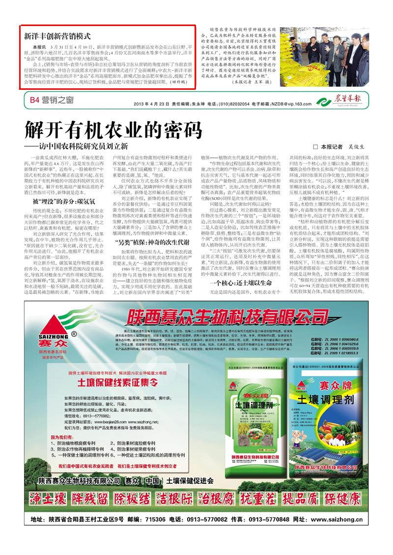 会上,《销售与市场·农资与市场》杂志社总策划冯卫东从营销的角度剖析了当前农资经营环境和趋势,并结合实战需求对太阳成tyc122cc营销模式进行了全面阐释曰中农大-太阳成tyc122cc新型肥料研发中心推出的洋丰野金品冶系列高端肥面市。新模式加金品肥双拳出击,提振了参会零售商经营洋丰肥的信心,现场订货积极,金品肥与常规肥订货量超同期。