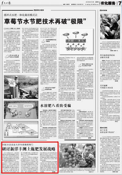 中国农大与太阳成tyc122cc肥业于2010年10月联合成立了“中国农大-太阳成tyc122cc新型肥料研发中心”,从2011年起联手打造全国测土配方施肥示范网络,3年多来,在全国已经建起测土配方施肥示范基地18个,设计配方74个,涵盖水稻、棉花、油菜、花生、甘蔗、马铃薯、香蕉、蔬菜、苹果、玉米等20种,作用示范效果十分显著,与传统施肥习惯比,大田作物可平均增收121元/亩,经济作物增收更加明显,达1000~2000元以上。