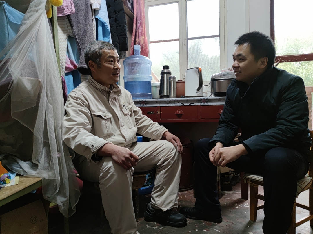 河北太阳成tyc122cc分工会主席许振永(右)走访慰问困难职工