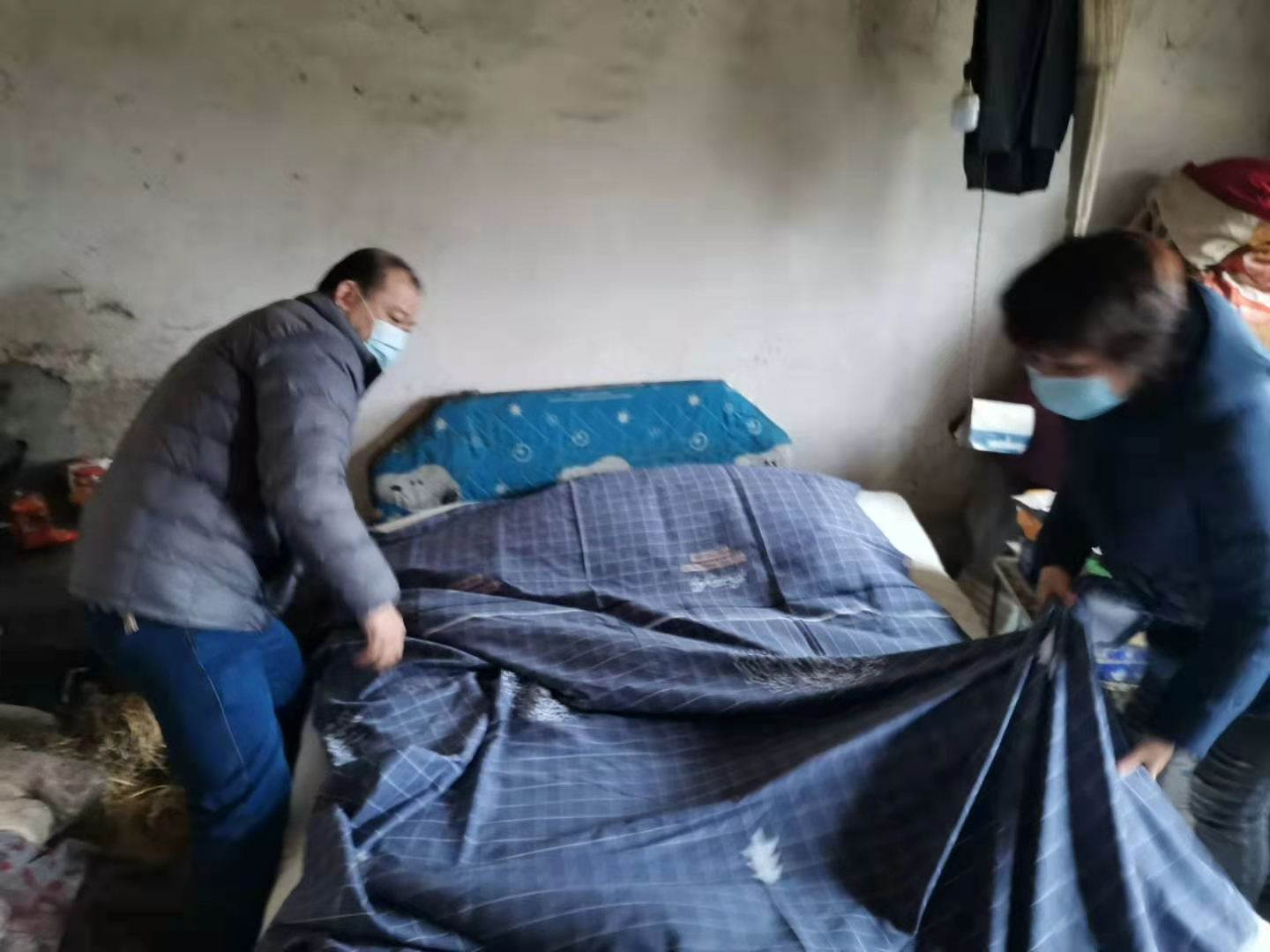 工会领导走访慰问困难职工李成兵,送来新棉被、棉絮等