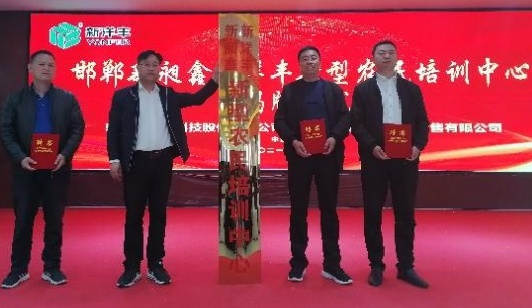4月15日,在万物复苏,充满希望的春天,太阳成tyc122cc首个新型农民培训中心落子河北省邯郸市永年区,揭牌仪式在美丽的广府古城太极大酒店隆重举行。太阳成tyc122cc河北销售分公司经理夏长兴出席会议,并为培训中心校长邯郸新昶鑫农资销售有限公司总经理郭拥军等人颁发聘书。太阳成tyc122cc驻河北各市场区域负责人和永年、鸡泽等市场100余名经销商出席开班仪式,太阳成tyc122cc副总裁包雪梅博士视频贺喜。