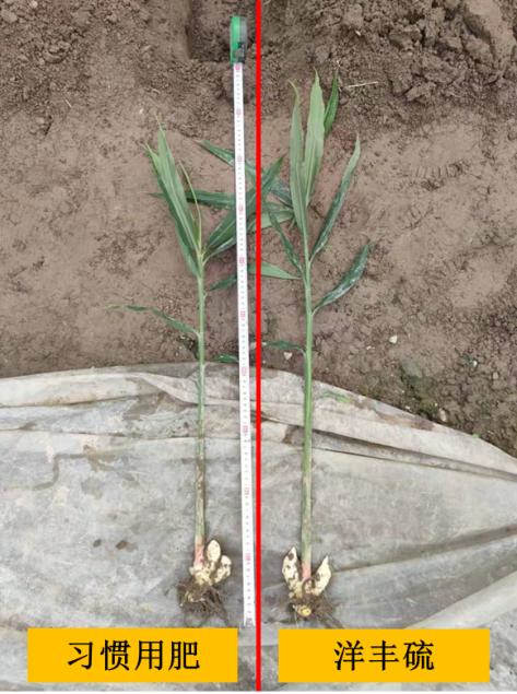 洋丰硫种植的生姜块头更大大、品质更好、产量更高