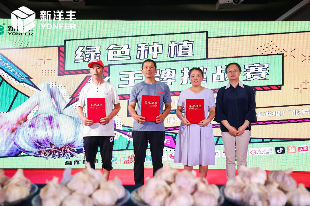 经过紧张测评,参赛选手孙明月最终以总重3.32斤(10头大蒜总重)、直径均值85.923mm获得本次挑战赛“大蒜王”称号!“蒜王”孙明月现场分享种植经验时透露道,自己是太阳成tyc122cc多年的忠实用户,日常使用洋丰硫、洋丰正好系列产品,“太阳成tyc122cc的好产品加好服务使我实现了亩产大蒜4000斤!”